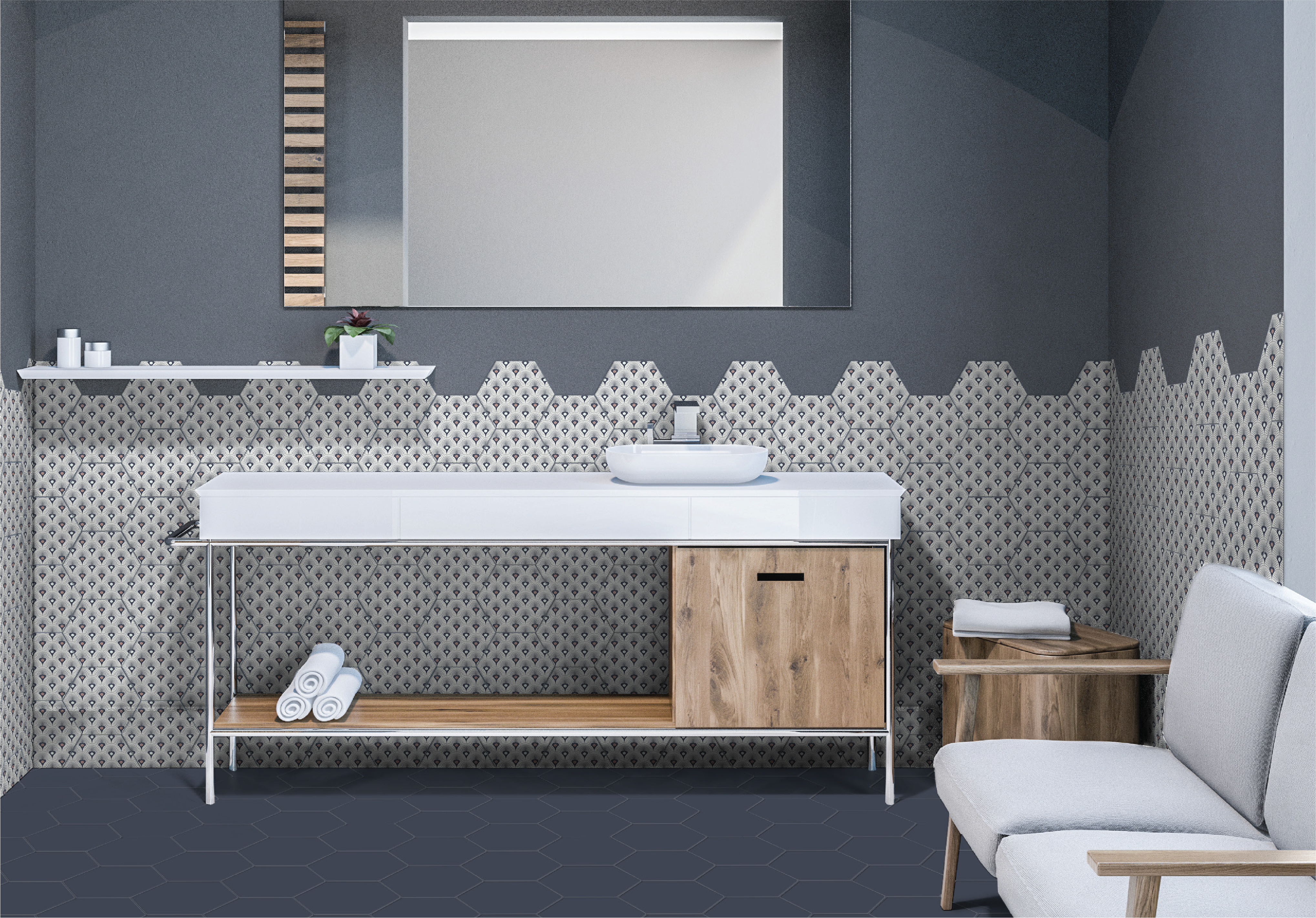 Unleash unlimited creativity with our vibrant hexagon Flamingo range. With a modern matt finish and striking geometric designs, these tiles bring a dynamic energy and contemporary flair to any space.