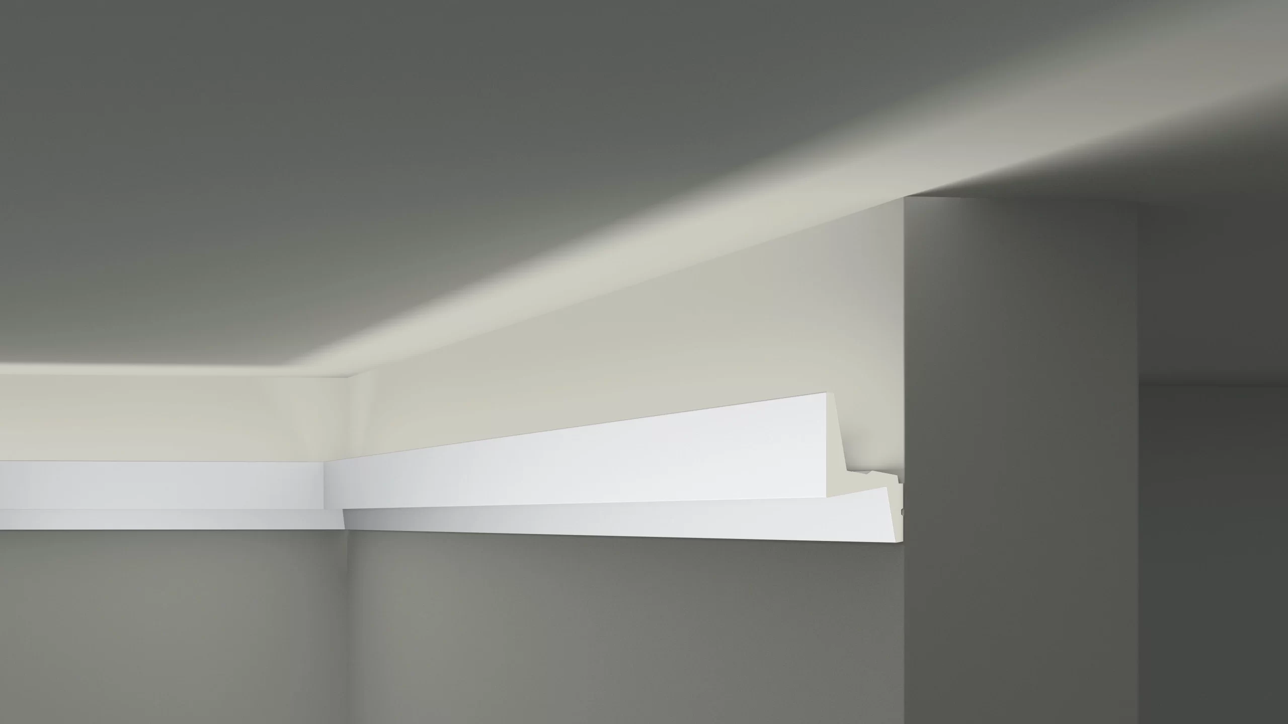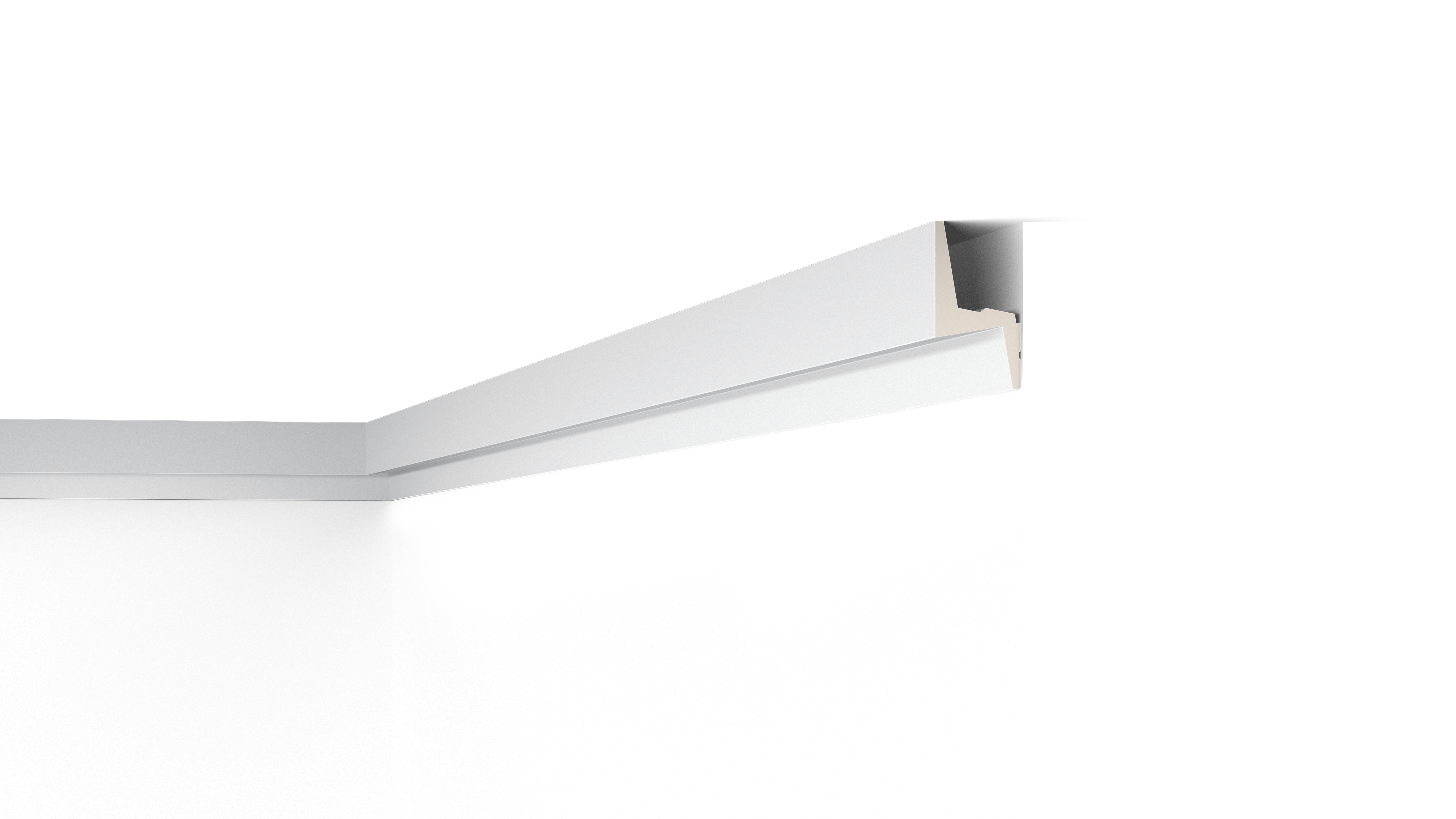 The IL6 can easily be placed in different positions to alter the lighting emphasis. Installation is simple as the mouldings are lightweight and durable, and arrive primed ready for painting. These cornices are designed for lighting and have enough space to conceal LED strips for a perfect source of indirect light.
